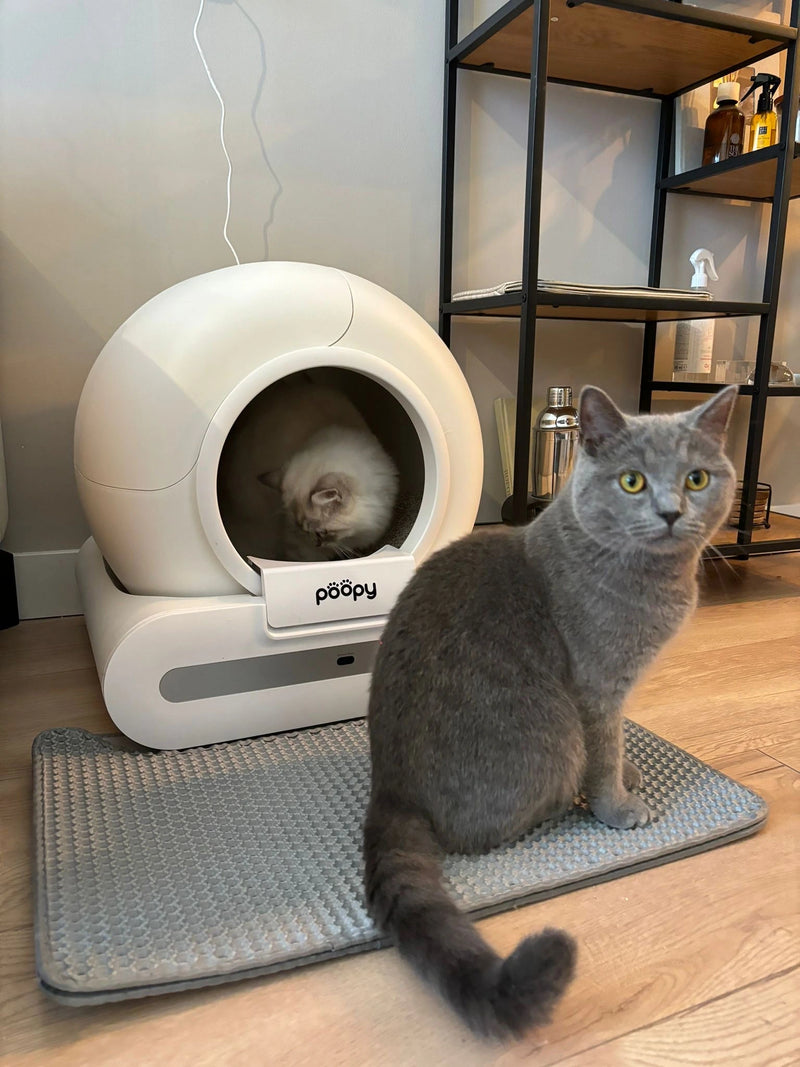 "With the arrival of our third cat, after much deliberation, I treated myself to the convenience of the Poopy Nano 2. The oldest one, who is 15 years old, was immediately fine with it. I wasn't worried about our cat of 5 and our kitten, and I was right. What an invention and how nice that there are videos to be found on YouTube."