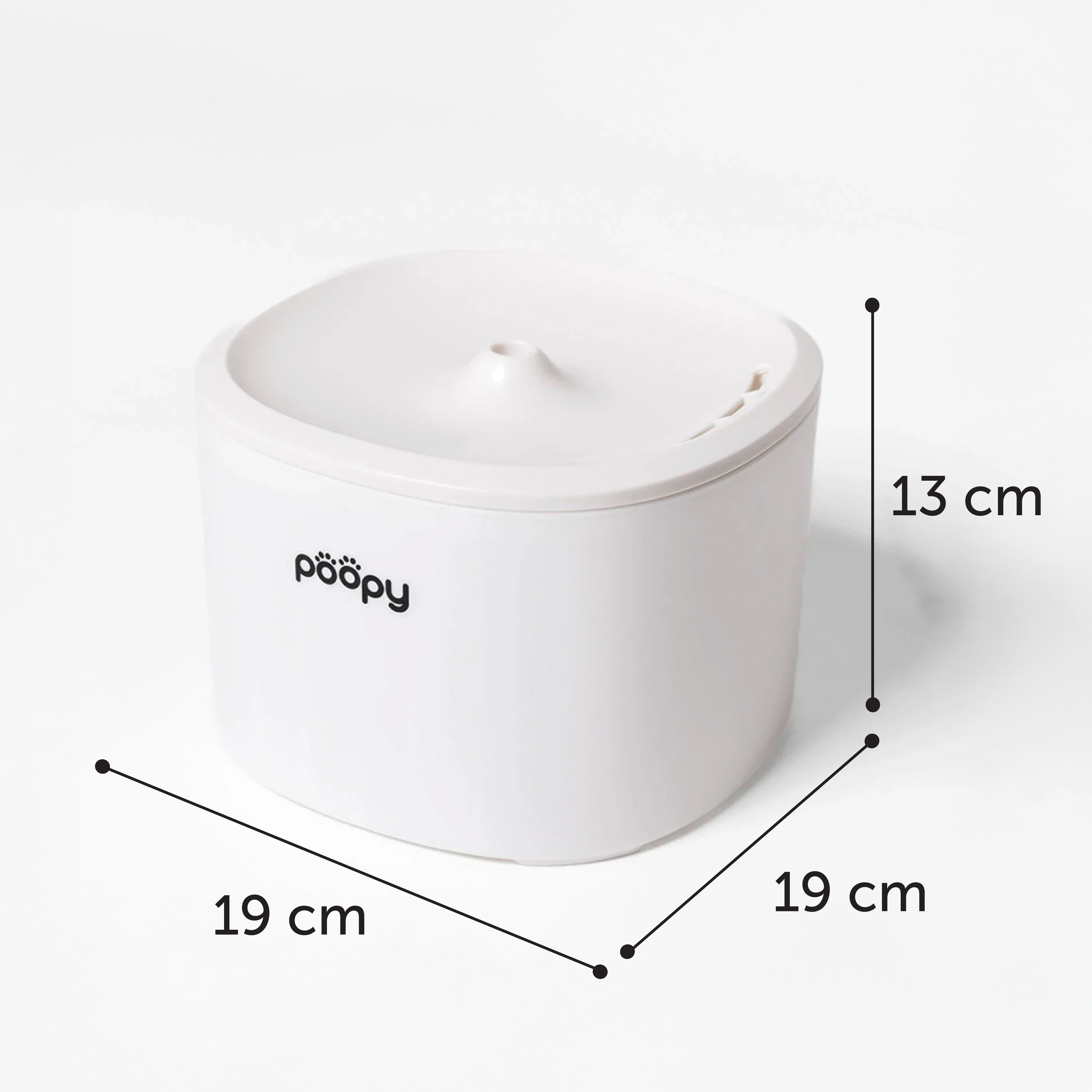 The Poopy Flow Drinking Fountain provides constant fresh, filtered water and encourages healthy hydration. No stagnant water, just a fresh and clean drinking experience for your cat!