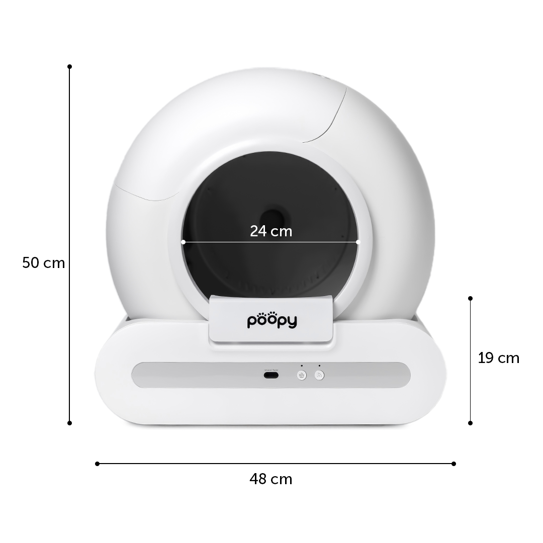 En bref : 1 Poopy Nano 2 est idéal pour 1 à 3 chats. Si tu as 4 chats ou plus, nous te recommandons d'envisager un Poopy supplémentaire pour plus de commodité.