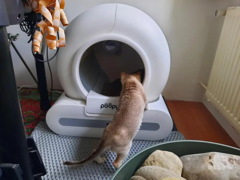 Elke kat is anders. De meeste katten accepteren de Poopy snel, maar sommige hebben wat tijd nodig om te wennen aan het automatische schoonmaakmechanisme. Introduceer de Poopy daarom rustig en stapsgewijs.